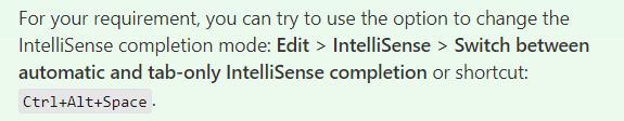 Turning off Visual Studio 2022 IntelliSense selection with space bar: