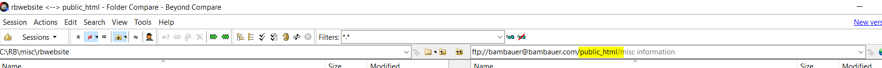 noticed on the filezilla setup screen on the old site, bambauer is listed under the username