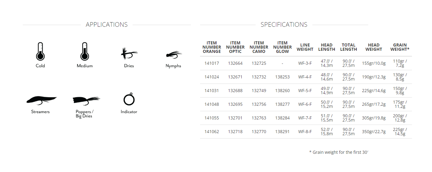 - 50-foot head that allows for long, accurate casts and exceptional mending on the water