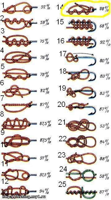 for bobber knot, clinch knot, double clinch, improved clinch, blood snell, grip knot, hook snell, improved surgeons, end loop knot (aka spider hitch), nail knot, rapala knot