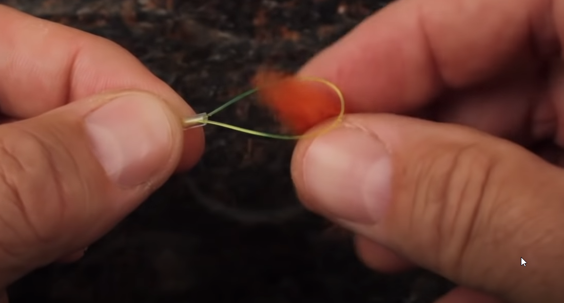 attaching a trout bead with a stopper knot wrapped around shank of bare hook video at 3:23