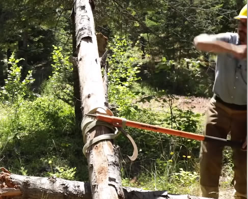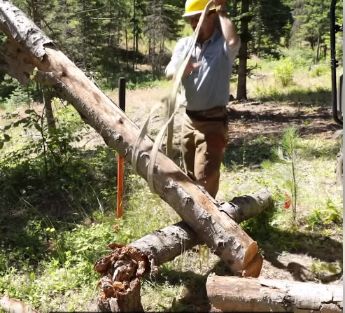 wrap strap around trunk and use peavy to roll log