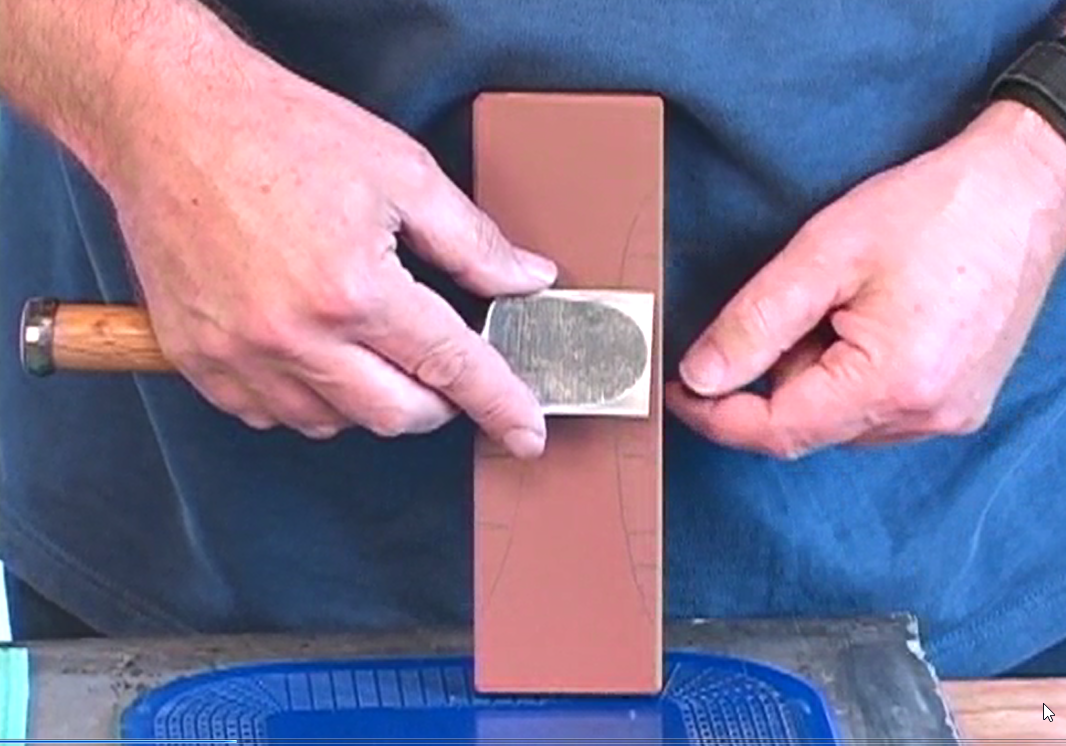 - 18:50 the low spot at the edge on a plane blade or wide Japanese chisel would cause a belly and this would be undesirable.